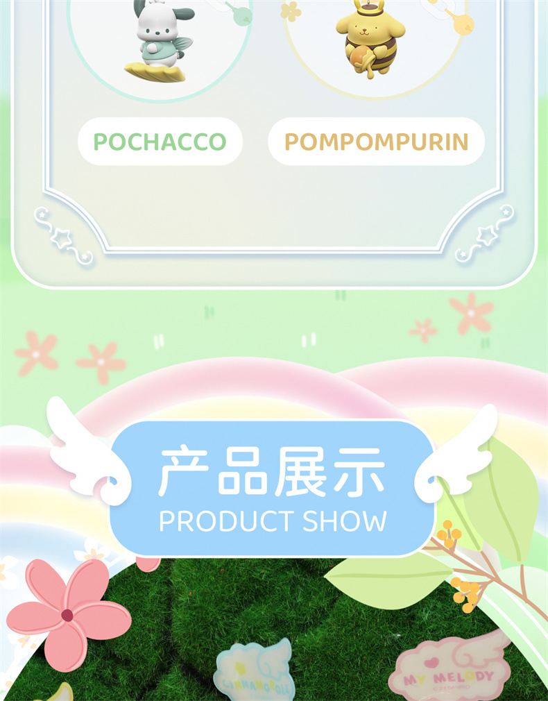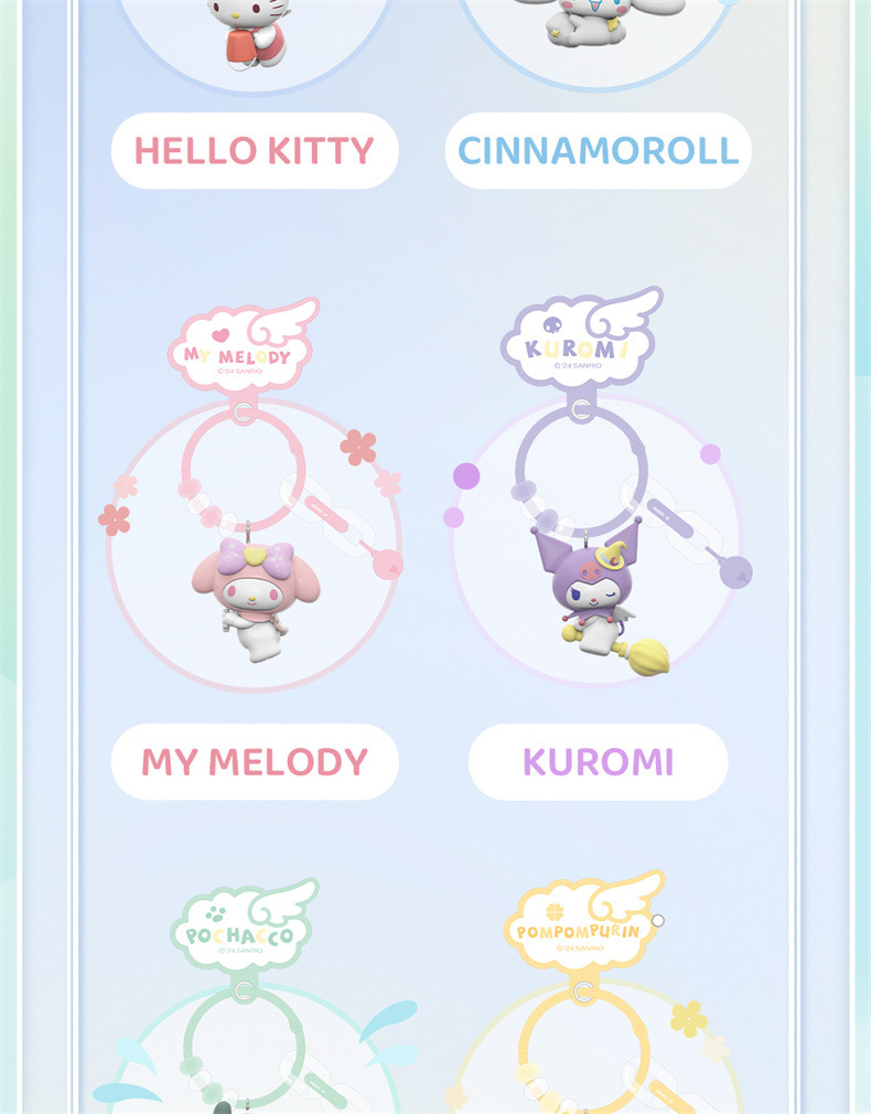 - Characters: Features beloved Sanrio characters like Hello Kitty, My Melody, Kuromi, Pompompurin, Cinnamoroll, and Pochacco.