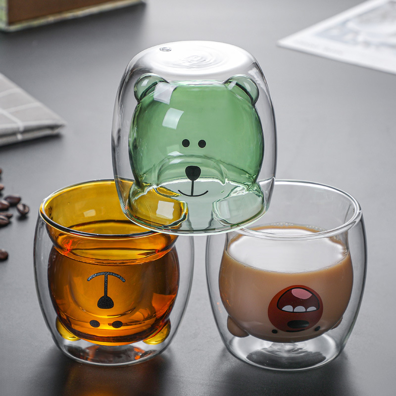 - Double-wall Insulated Glasses, each mug boasting a cute BEAR or CAT that holds 230-280ml.
